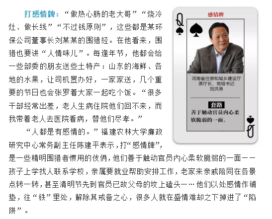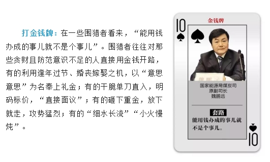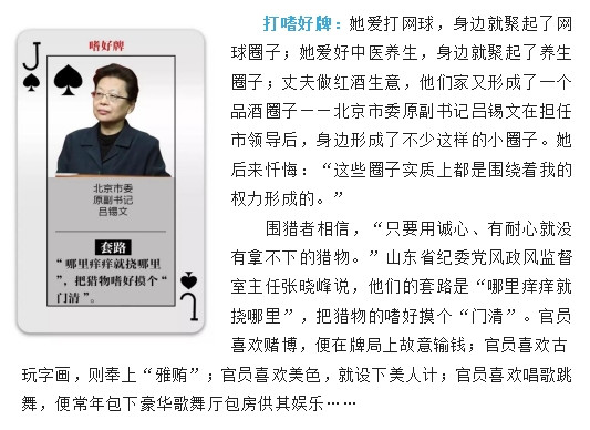 采取怎样的猎取手段,对围猎者来说是很有讲究的。“苍蝇专叮有缝的蛋。”围猎者笑里藏刀,专挑软肋,因人下套,能炮制出“总有一款适合你”的“牌路”。面对这种潜移默化的“围猎”方式,党员领导干部须臾不可不警惕,只有心中保持对纪法的敬畏,识别别有用心的“围猎”者,自觉净化朋友圈,以德交友,防损友、结益友,才能真正做到初心不改、底线不失。
