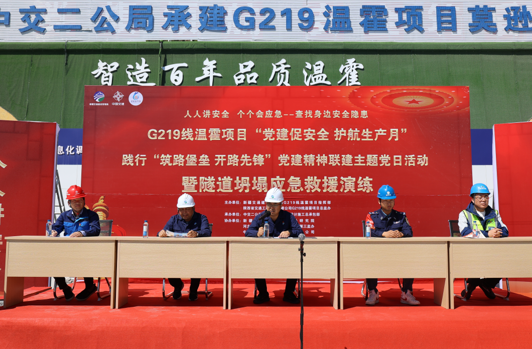为深入贯彻国家“安全生产月”活动要求,切实提高项目应对隧道施工突发事故的应急处置能力,保障作业人员生命财产安全,2025年6月19日,在温霍项目莫逊山隧道进口施工现场组织开展了隧道坍塌事故应急救援演练。